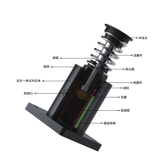 3.外置機械彈簧復位結構,緩沖器的壓縮回復力較小。